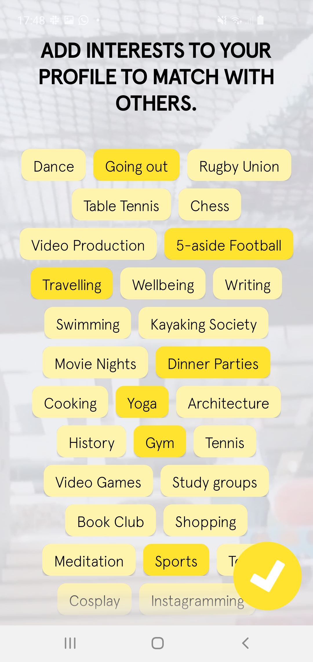 Provide the ultimate ice-breaker tool, as customer select activities they wish to partake in and connect with others who have also selected these activities.