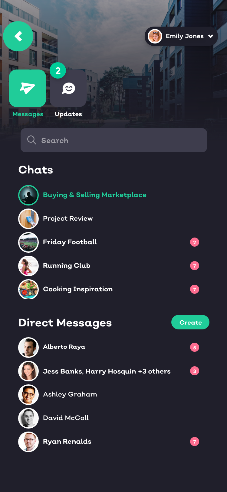 Occupants can send direct messages to anyone that is discoverable within your community - from staff members to other like-minded individuals.