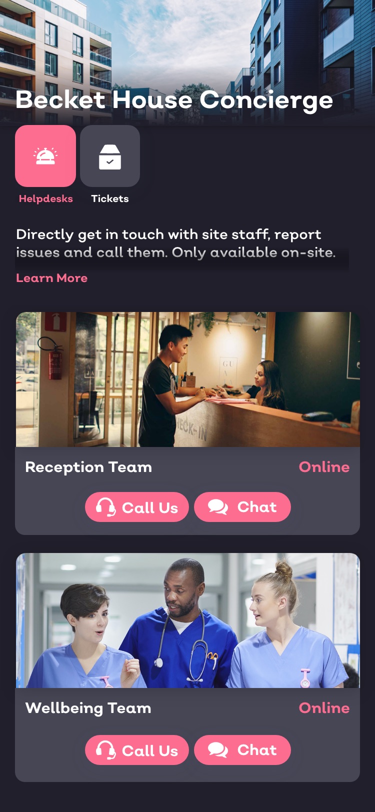 Customers instantly report maintenance or wellbeing issues to the right department to be resolved immediately.